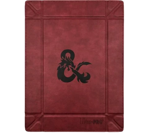 Roll your dice in a safe and stylish place with Ultra Pro ‘s foldable dice tray. Thanks to the strong small magnets in each corner, you can set up the container in the blink of an eye. The Dice Rolling Tray is double-sided and can be used on both sides. Made of gray and red leatherette with a print of the Dungeons & Dragons logo. The tray is not much larger than an A4 and therefore makes it easy to carry or store the Dice Rolling Tray.